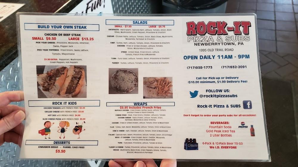 Welcome to Rock-It Pizza & Subs, your go-to pizzeria located at 1995 Old Trail Rd, Etters, PA. We specialize in delicious, traditional dishes, offering a wide selection of pizzas, subs, and beverages, including an impressive variety of beers. Enjoy a relaxed atmosphere perfect for solo diners and groups alike, with options for dine-in, takeout, and delivery. Our accessible facilities ensure everyone can savor our mouth-watering meals, whether it's lunch or dinner. With quick service, kid-friendly menu items, and a cozy setting, Rock-It Pizza & Subs is the ideal spot to satisfy your cravings. Join us today!
